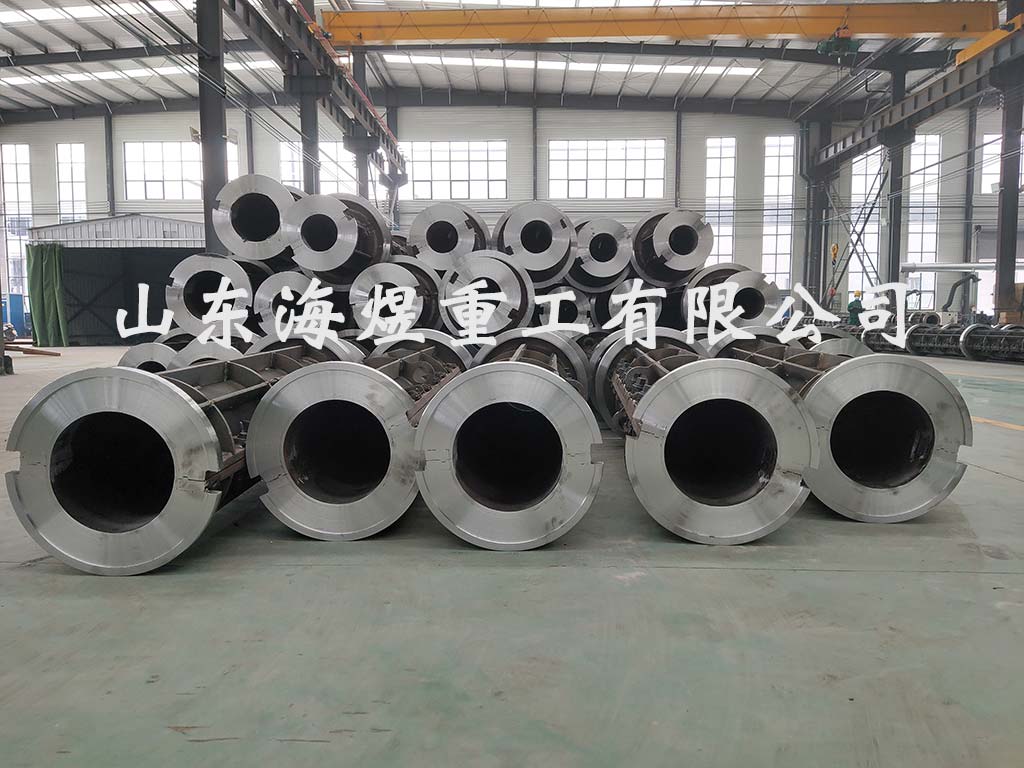 光伏樁模具是生產(chǎn)先張法預(yù)應(yīng)力光伏樁、混凝土管樁和異型樁的主要設(shè)備,由上下兩個(gè)半模組成,兩個(gè)半模又分別由筒體、企口板、法蘭、縱向筋板、環(huán)向筋板、跑輪、輪心、定位銷和合模螺栓等組合而成,直徑范圍:300-1500mm,長(zhǎng)度范圍:7m-55m。