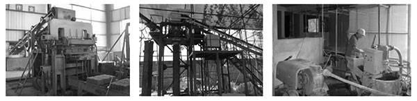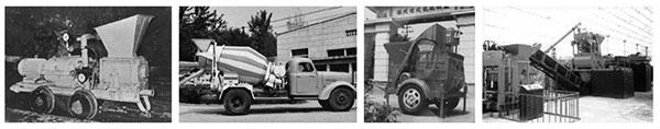 圖4 鼓輪式混凝土噴射機(jī) | 圖5 混凝土攪拌運(yùn)輸車 | 圖6 JD200型單臥軸混凝土攪拌機(jī) | 圖7 砌塊自動(dòng)化生產(chǎn)設(shè)備