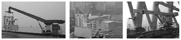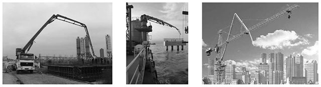 圖17 車載式混凝土布料機(jī) | 圖18 船載式混凝土布料機(jī) | 圖19 起重、布料兩用塔機(jī)